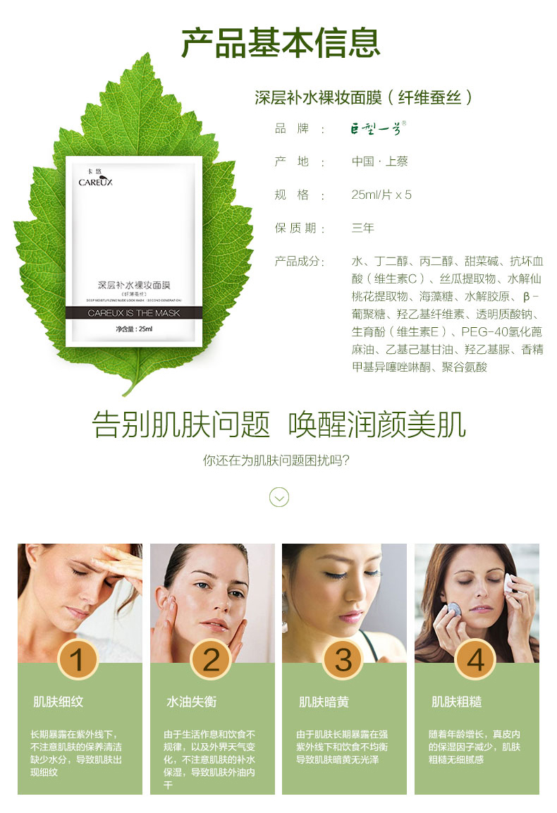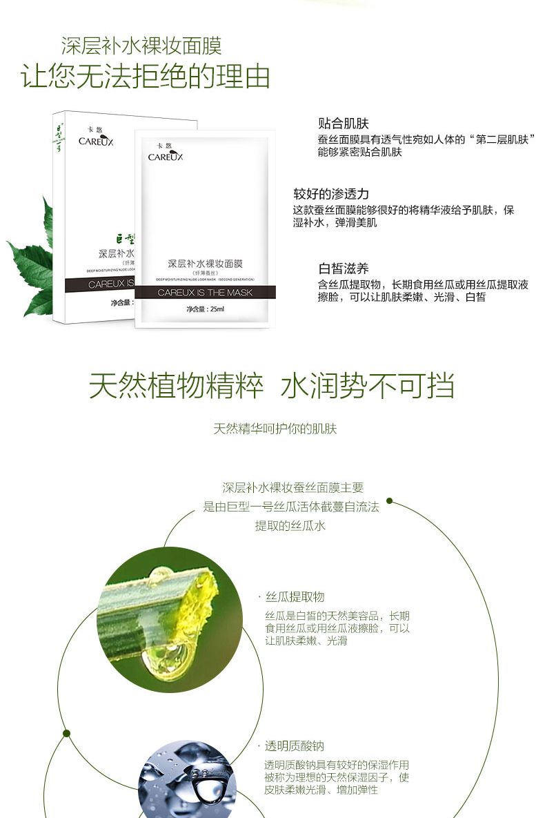 首页 > > > > 巨型一号深层补水裸妆补水保湿女蚕丝面膜贴清爽舒缓清洁收缩毛孔 学生孕妇可用 免洗护肤